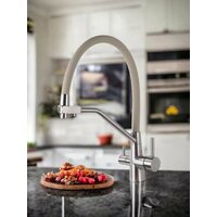Купить Смеситель для кухни (мойки) с гибким бежевым изливом и фильтром, хром, нержавейка T603S-6 с доставкой по всей России.