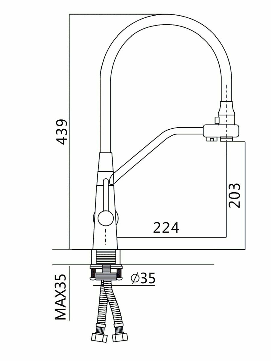 Купить Смеситель для кухни OUTE однорычажный, с отделным выходом под фильтр, с гибким изливом. Светло-бежевый. Латунь. с доставкой по всей России.