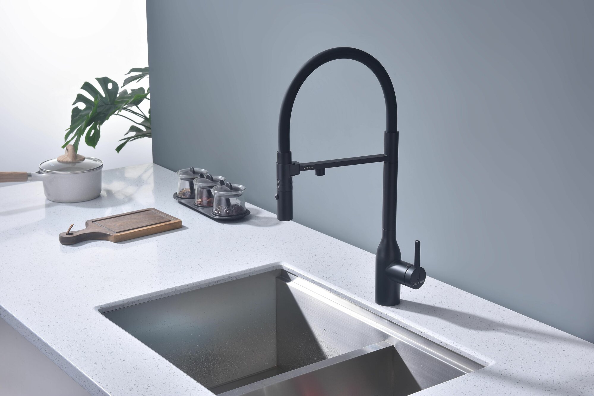 Смеситель для кухни Paulmark Magneto One 213188-AN для кухни (мойки), латунь, выдвижной, поворотный, гибкий, переключатель на излив/душ, антрацит: сравнение цен, характеристики, фото, актуальное наличие и цены.