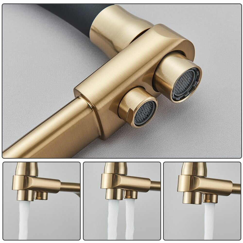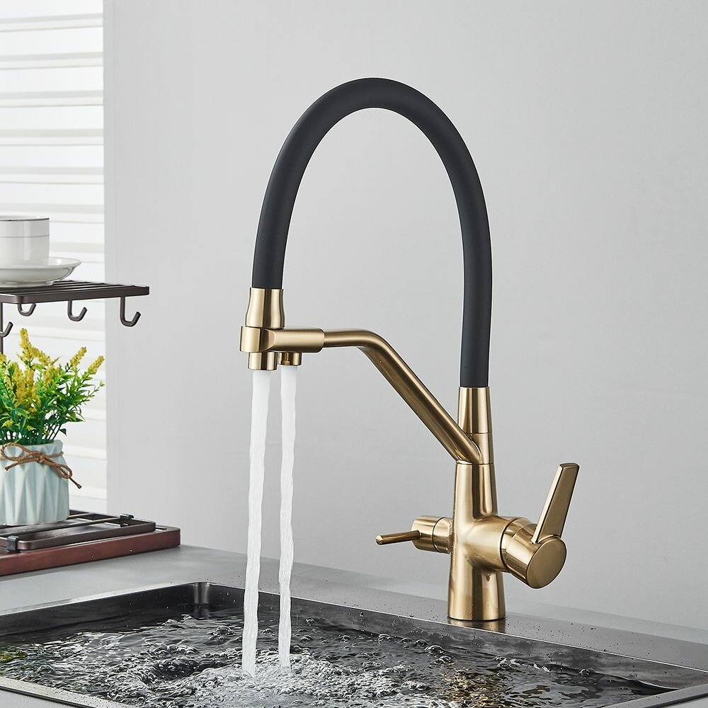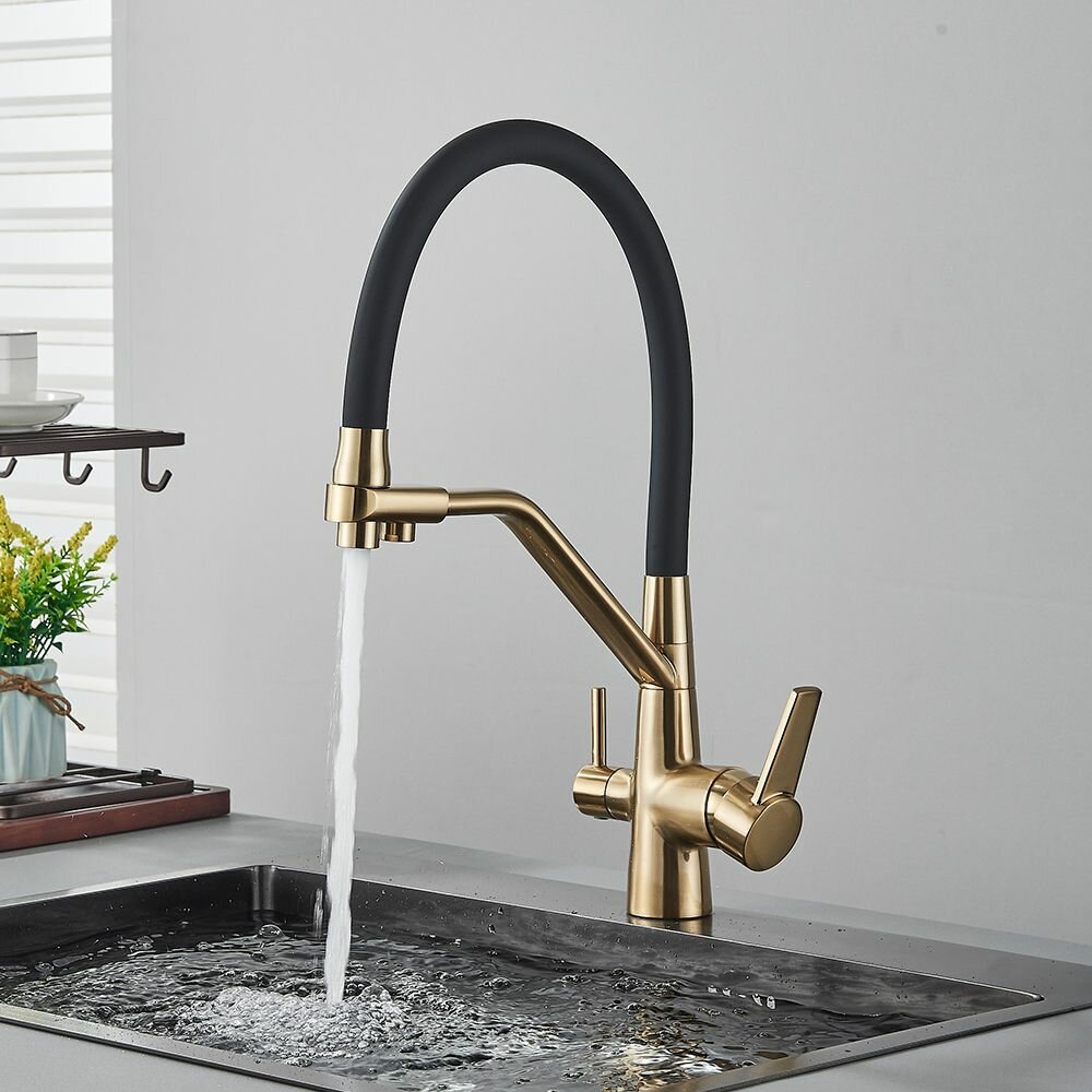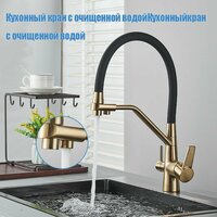 Смеситель для кухни под фильтр для питьевой воды / с гибким изливом / высокий, поворотный //нержавеющая сталь/Матовое золото: сравнение цен, характеристики, фото, актуальное наличие и цены.