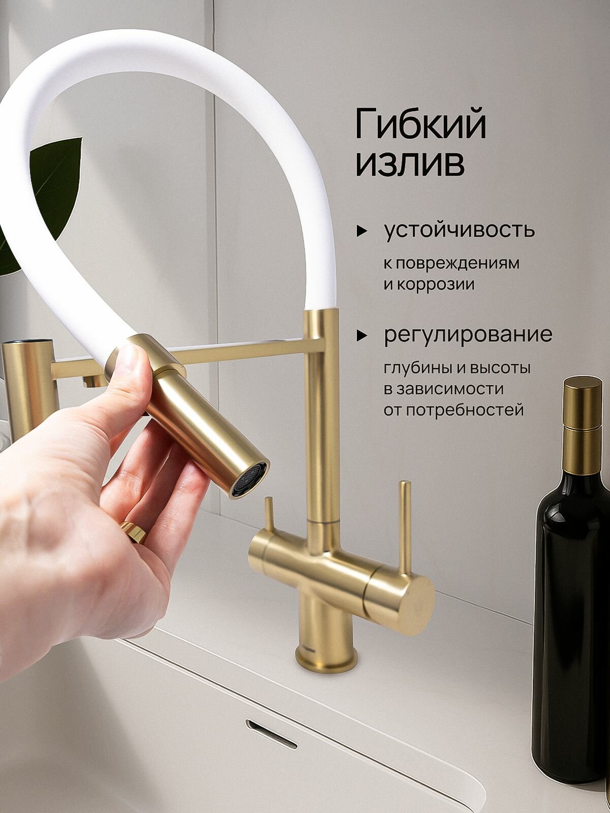 | Излив | выдвижной, гибкий, для фильтрованной воды, поворотный |