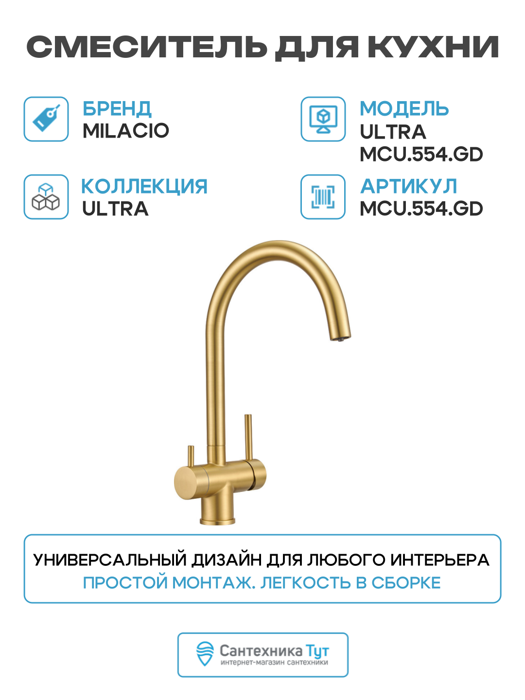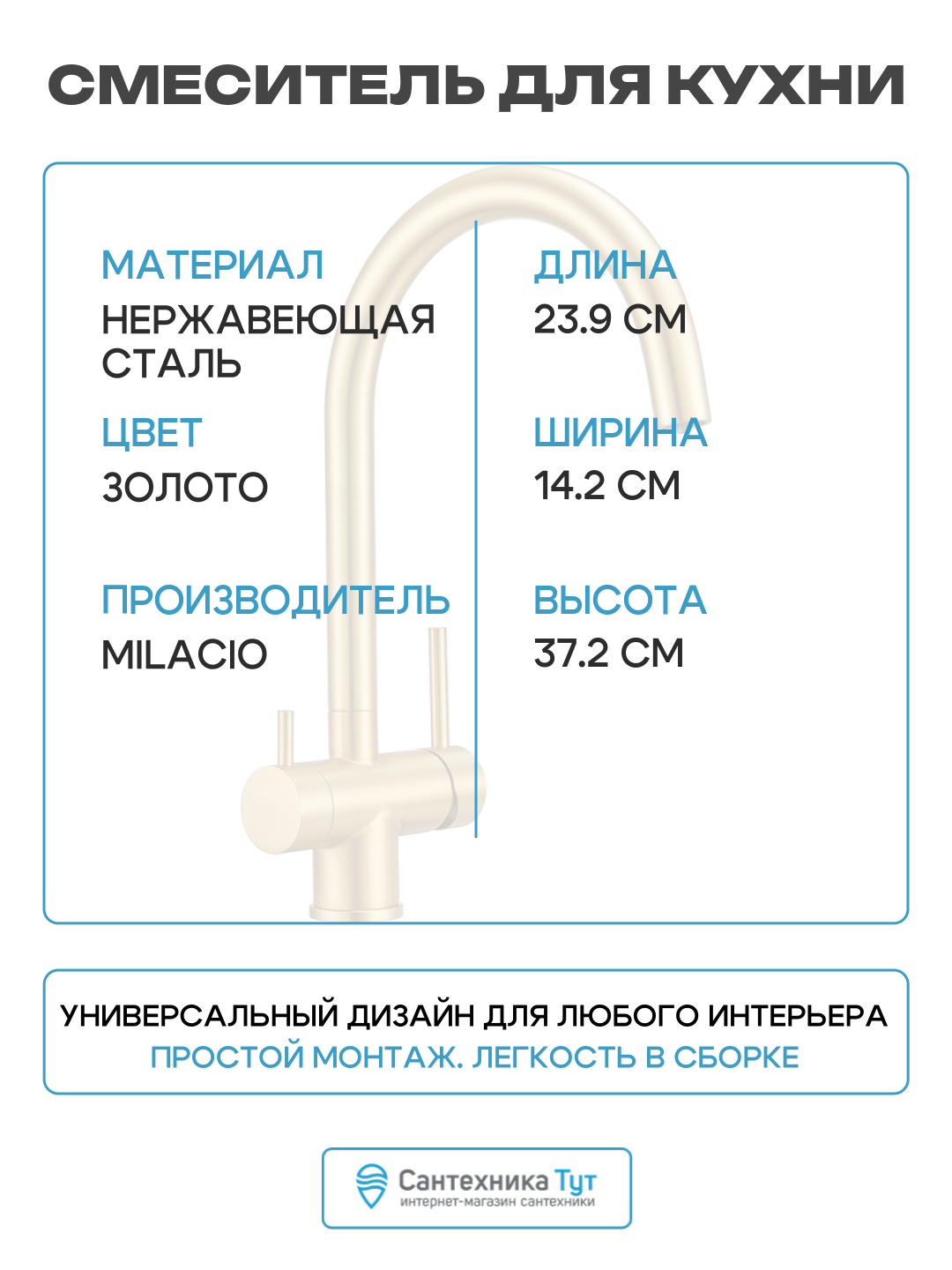 | Особенности | аэратор, встроенный фильтр, поворотный излив, система быстрого монтажа |