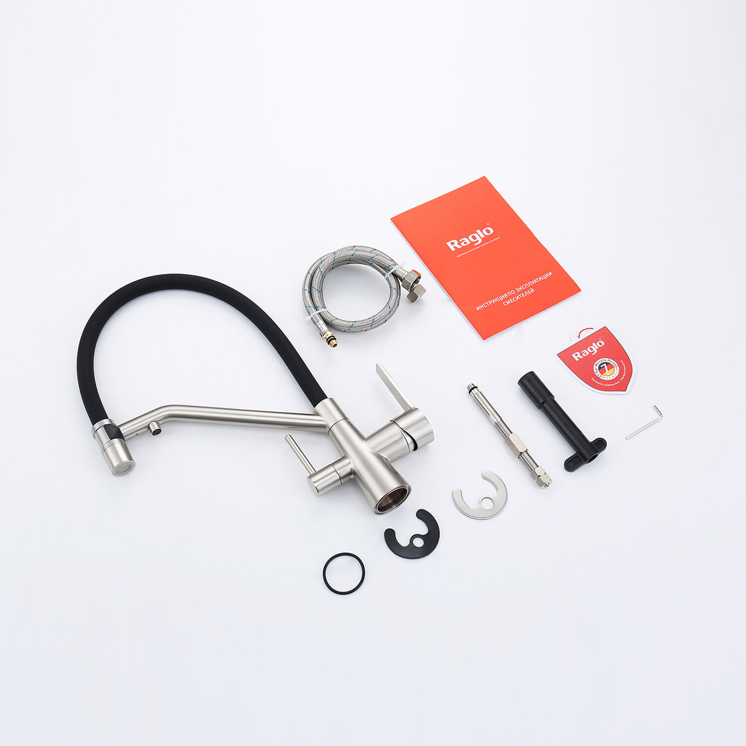 Смеситель Raglo R80.62.05 для кухни, с подключением к фильтру, съёмный гибкий излив, с магнитным фиксатором, сатин: сравнение цен, характеристики, фото, актуальное наличие и цены.