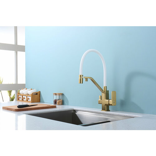 Смеситель Raglo R85.62.03 для кухни, с подключением к фильтру, гибкий излив, с магнитным фиксатором, сатин золотой: сравнение цен, характеристики, фото, актуальное наличие и цены.