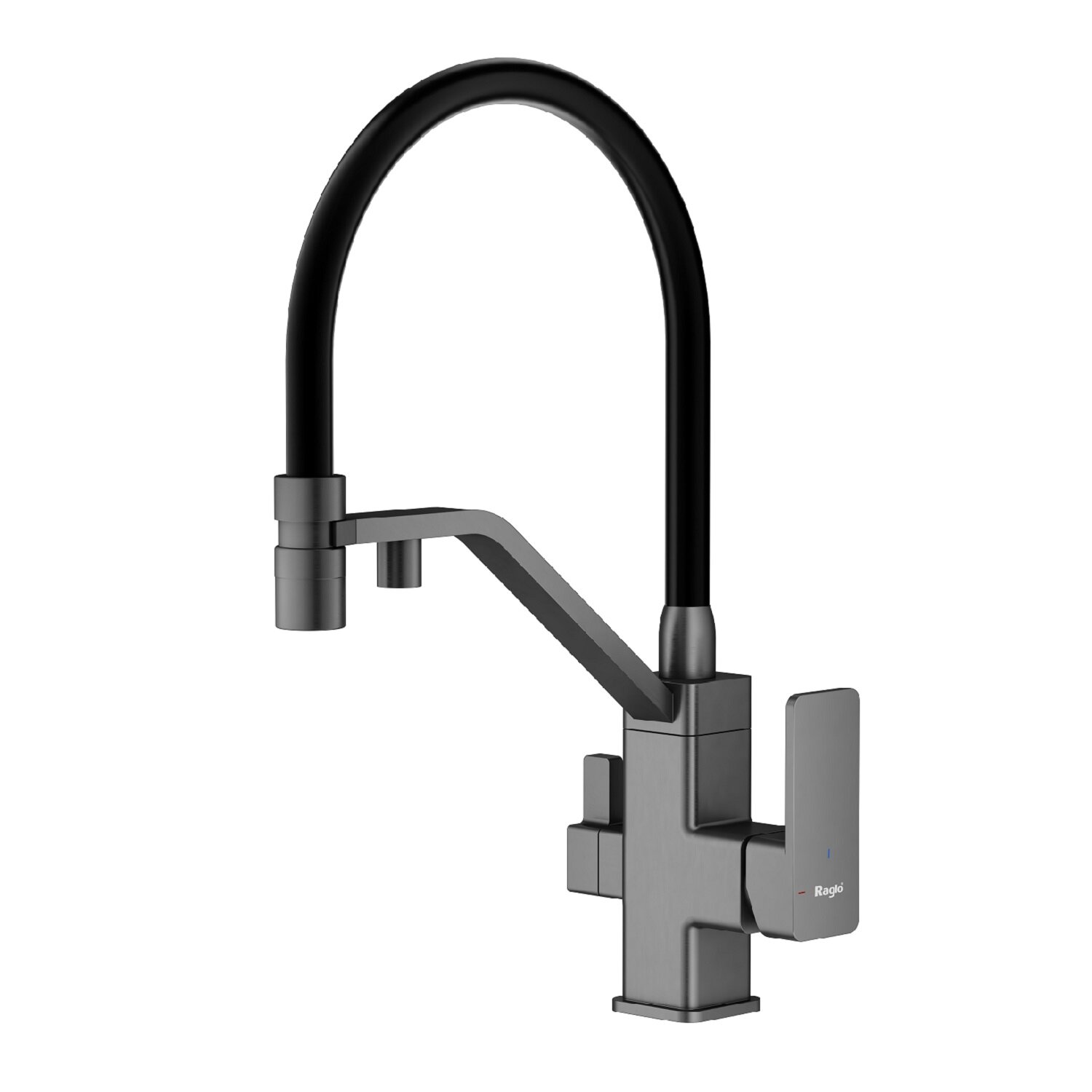 Смеситель Raglo R85.62.09 для кухни с подключением к фильтру, съёмный гибкий излив, с магнитным фиксатором, графит: сравнение цен, характеристики, фото, актуальное наличие и цены.