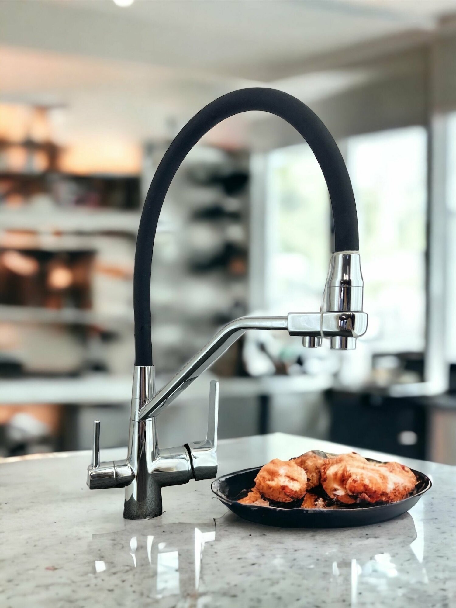 Смеситель для кухни Rainsberg корпус цвета хром с силиконовым гибким черным изливом, однорычажный, с отдельным выходом под фильтр. Цвет: хром с черным изливом: сравнение цен, характеристики, фото, актуальное наличие и цены.