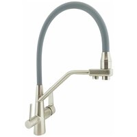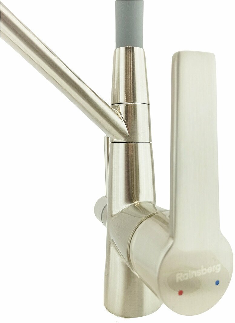 Купить Смеситель для кухни Rainsberg корпус цвета сатин с гибким серым изливом, однорычажный, с отдельным выходом под фильтр. Цвет: сатин с серым изливом с доставкой по всей России.