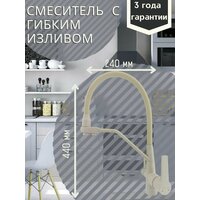 Смеситель для кухни Rainsberg с гибким изливом, однорычажный, с отдельным выходом под фильтр, Цвет: Бежевый меланж