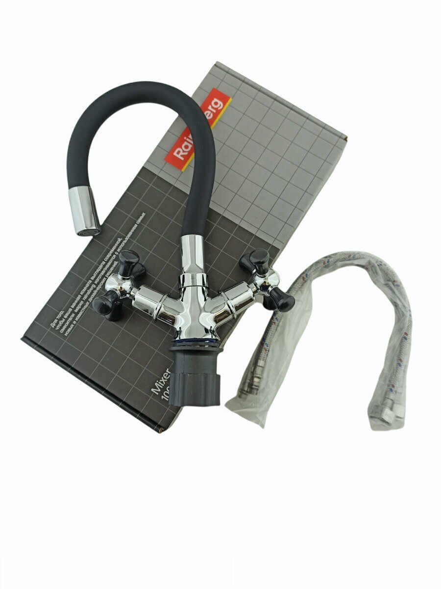 Смеситель для кухни Rainsberg с гибким силиконовым изливом, двухвентильный, встроенный аэратор. Высота 260 мм. Подвод воды гибкий. Способ монтажа вертикальный, на одно отверстие.: сравнение цен, характеристики, фото, актуальное наличие и цены.