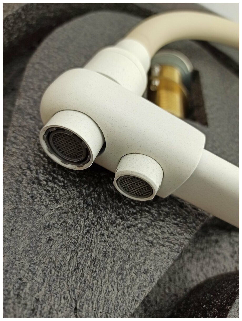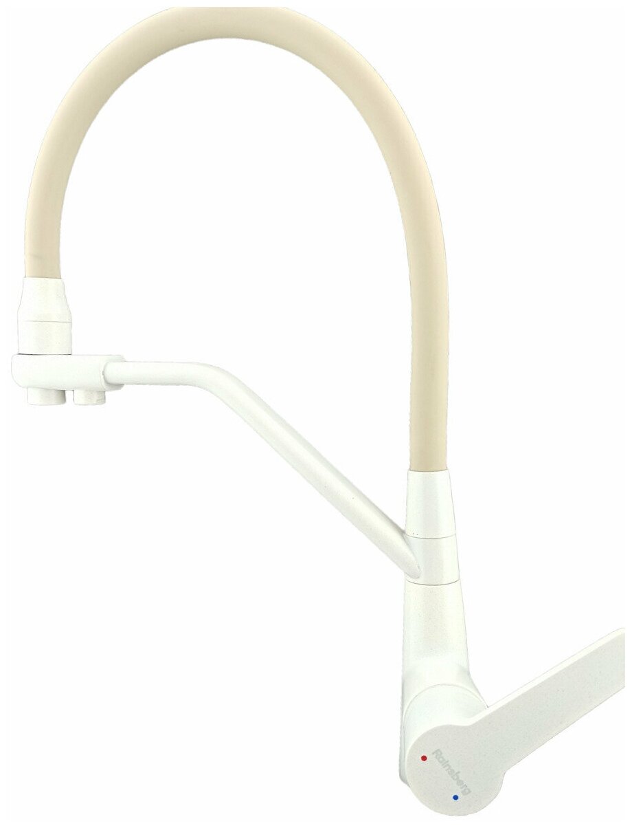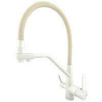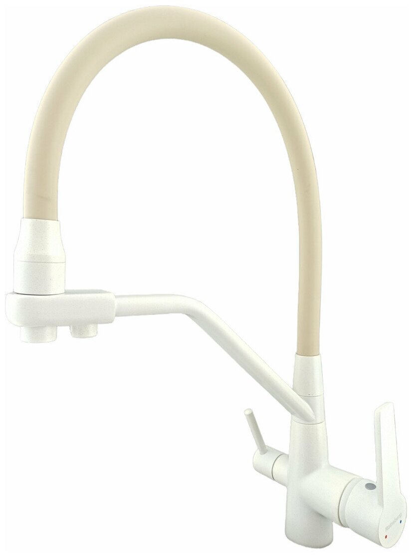 Купить Смеситель для кухни Rainsberg с силиконовым гибким изливом, однорычажный, с отдельным выходом под фильтр. Цвет: белый с бежевым изливом с доставкой по всей России.