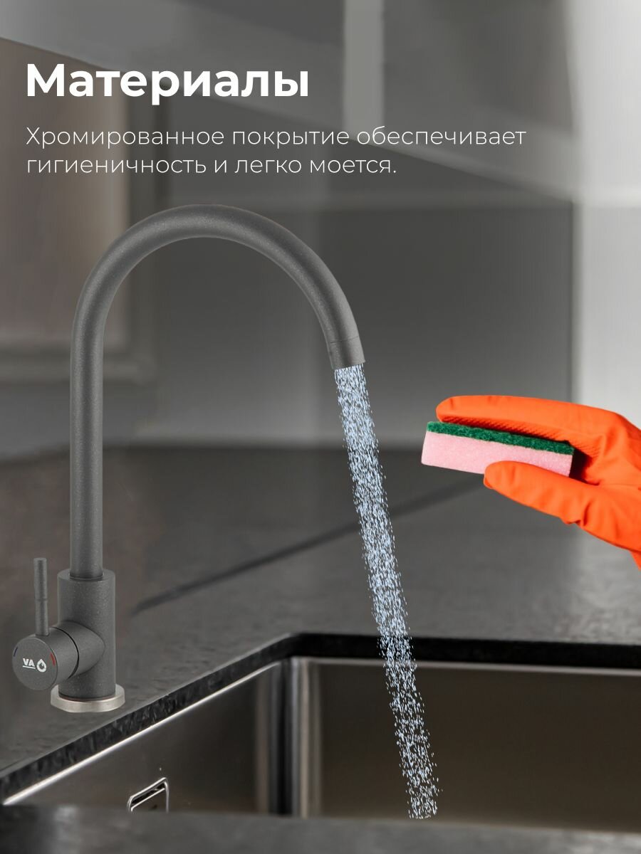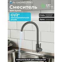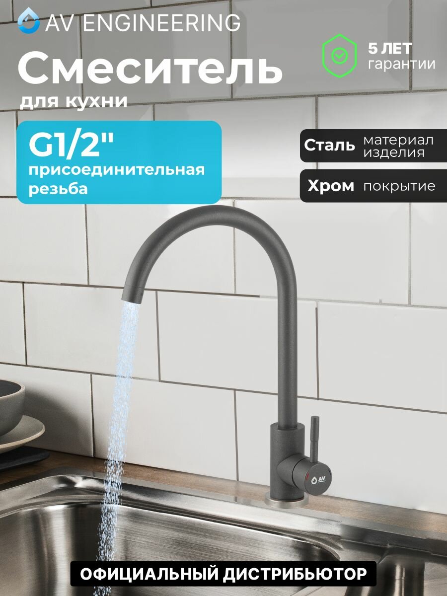 Смеситель для кухни AV ENGINEERING серия ZAR серый с высоким поворотным изливом (AVZAR4-A304GR-734): сравнение цен, характеристики, фото, актуальное наличие и цены.