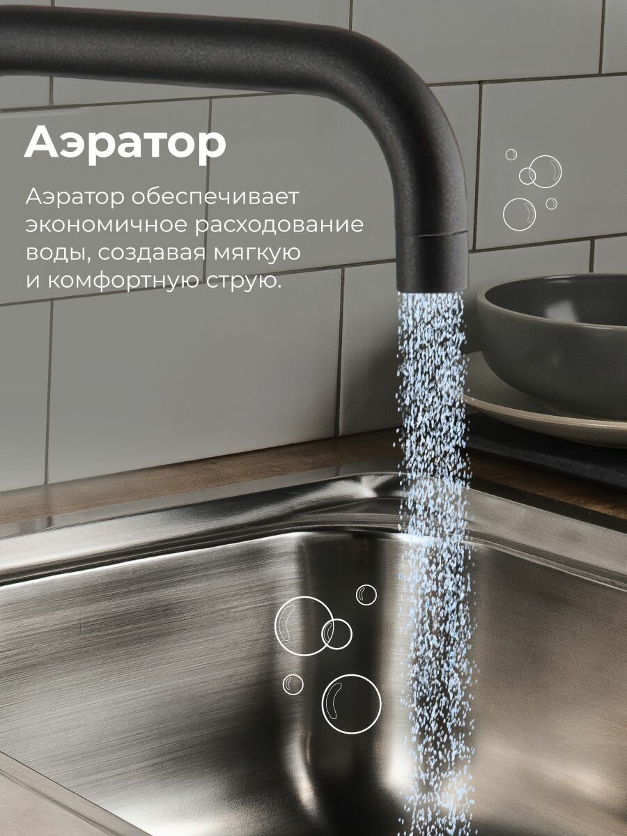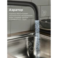 Смеситель для кухни, раковины с поворотным высоким изливом, аэратор AV Engineering (AVZAR4-B304BK-737)