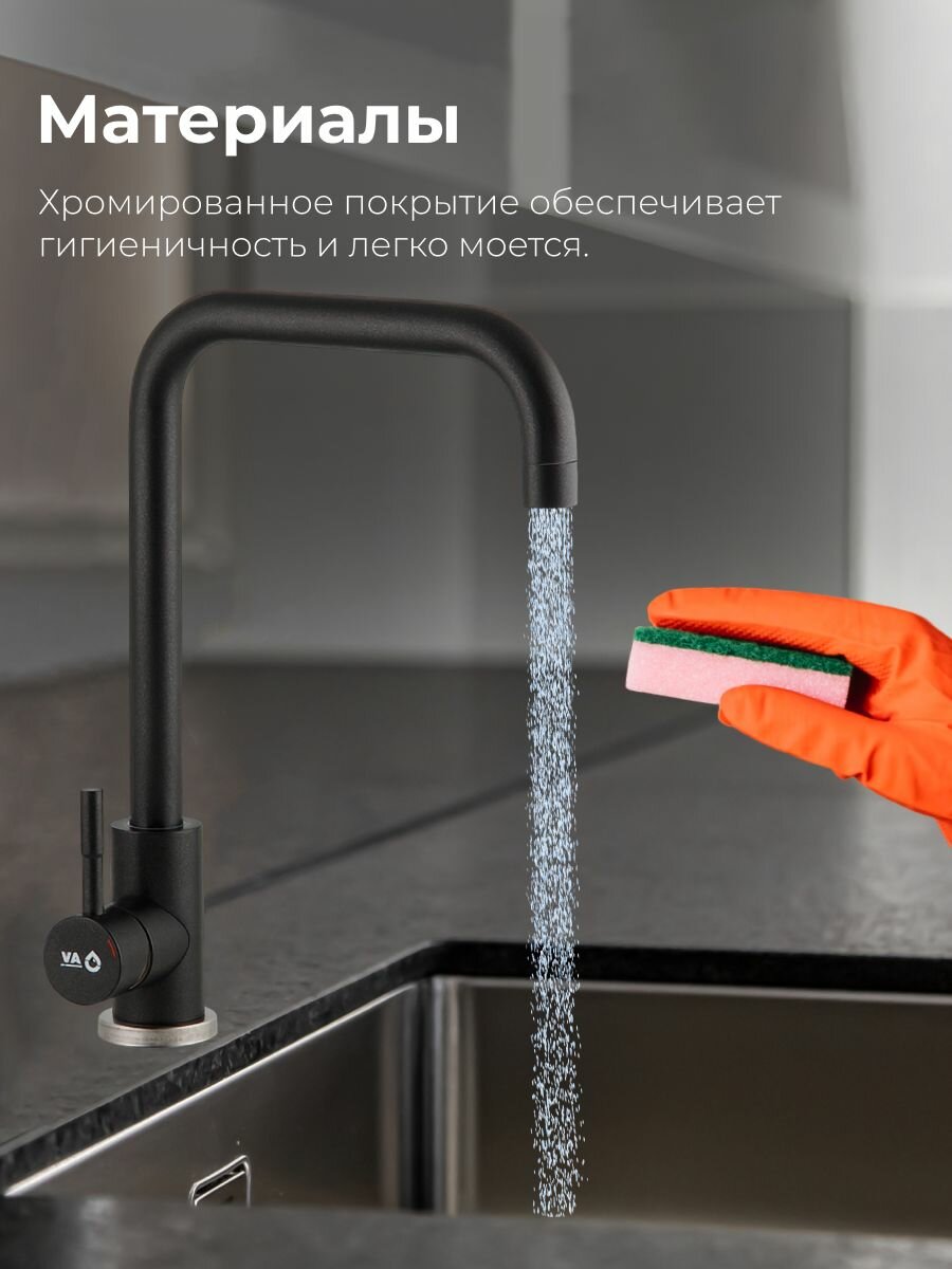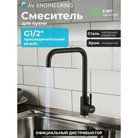Купить Смеситель для кухни, раковины с поворотным высоким изливом, аэратор AV Engineering (AVZAR4-B304BK-737) с доставкой по всей России.