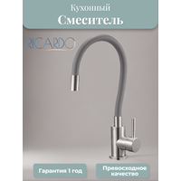 Смеситель для кухни Ricardo R4087-4, нержавеющий, гибкий излив, серый