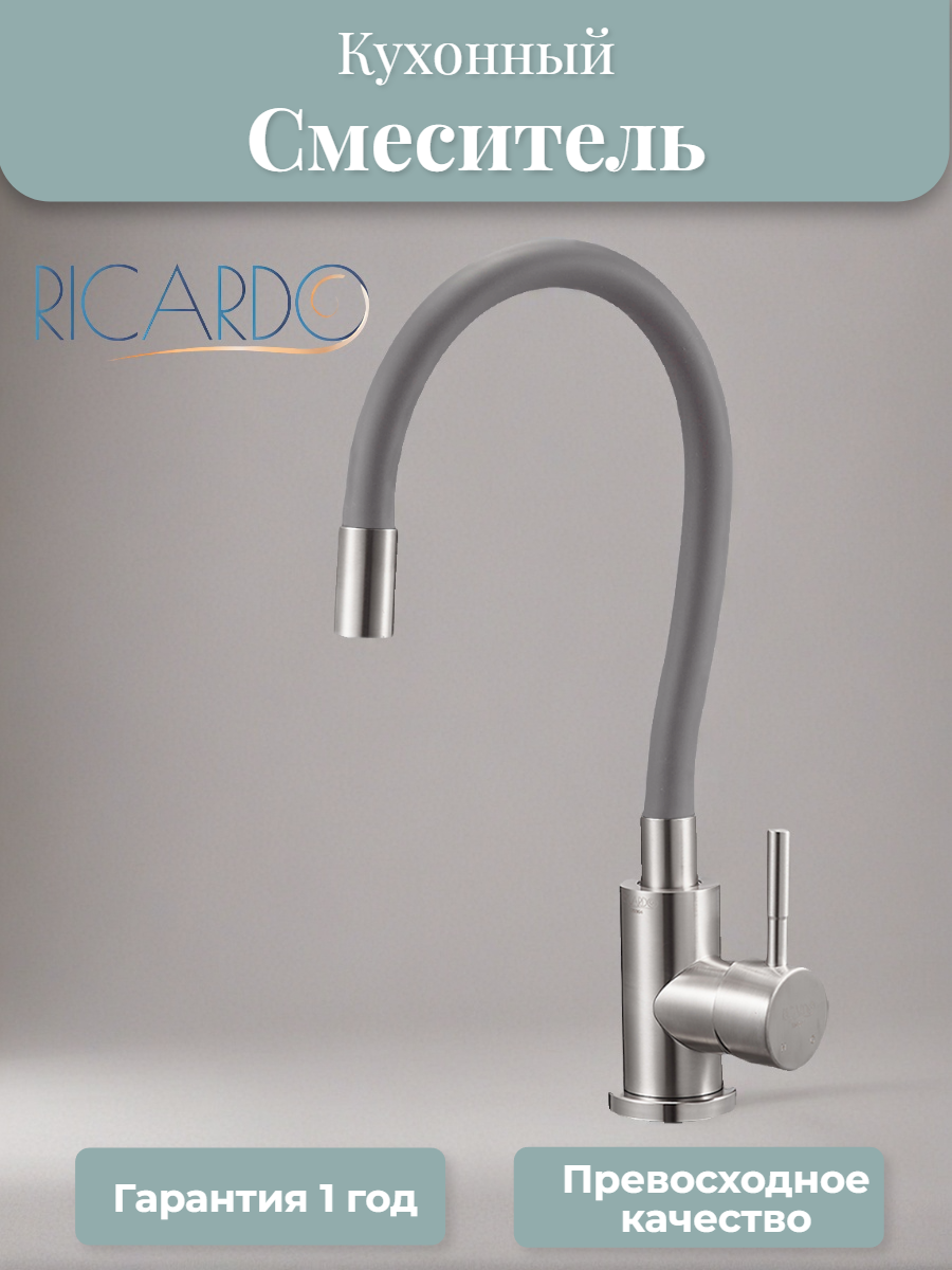 Смеситель для кухни Ricardo R4087-4, нержавеющий, гибкий излив, серый: сравнение цен, характеристики, фото, актуальное наличие и цены.