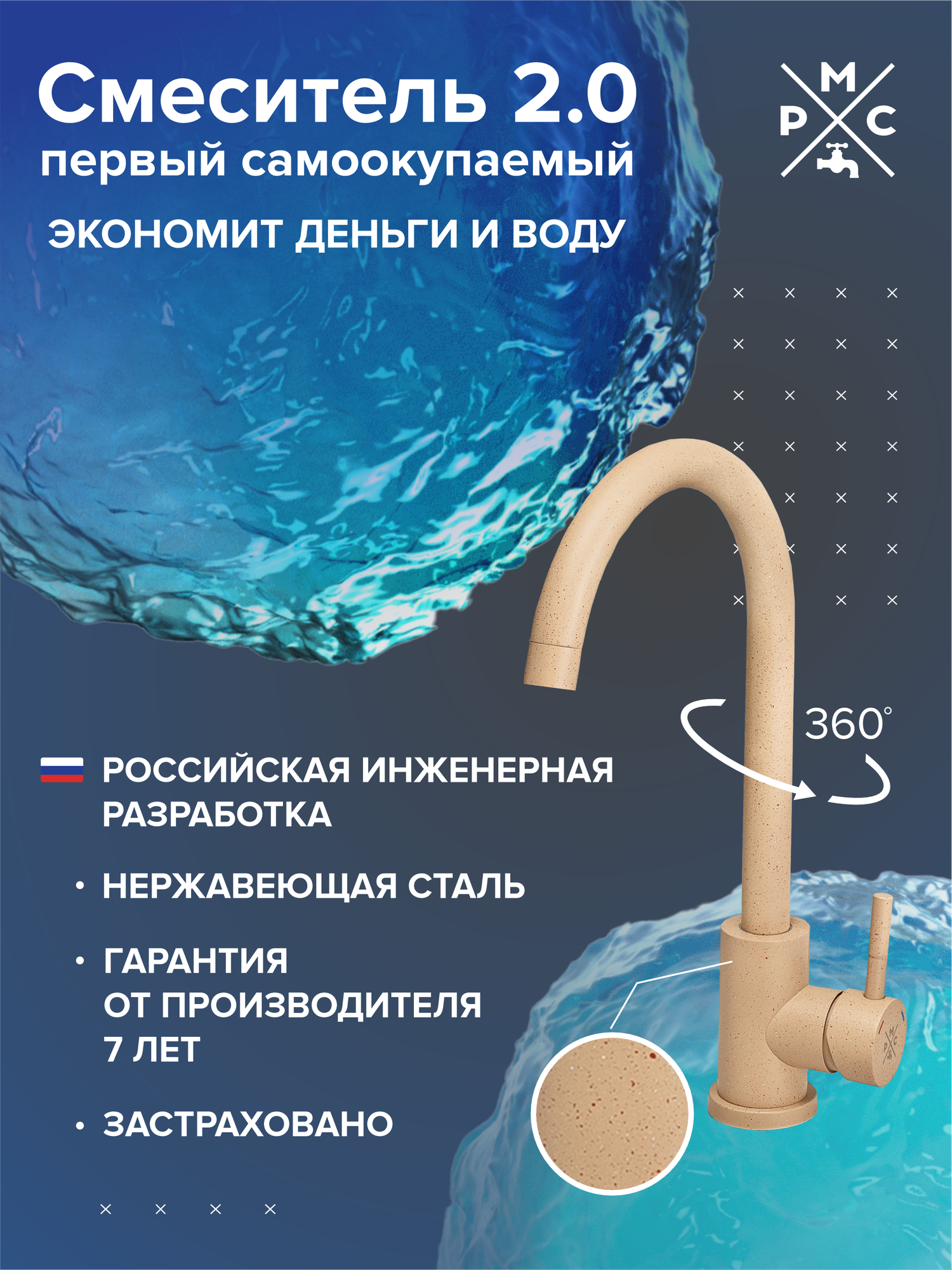 Смеситель для кухни РМС SUS124BNK-017F, нержавеющая сталь, поворотный излив: сравнение цен, характеристики, фото, актуальное наличие и цены.