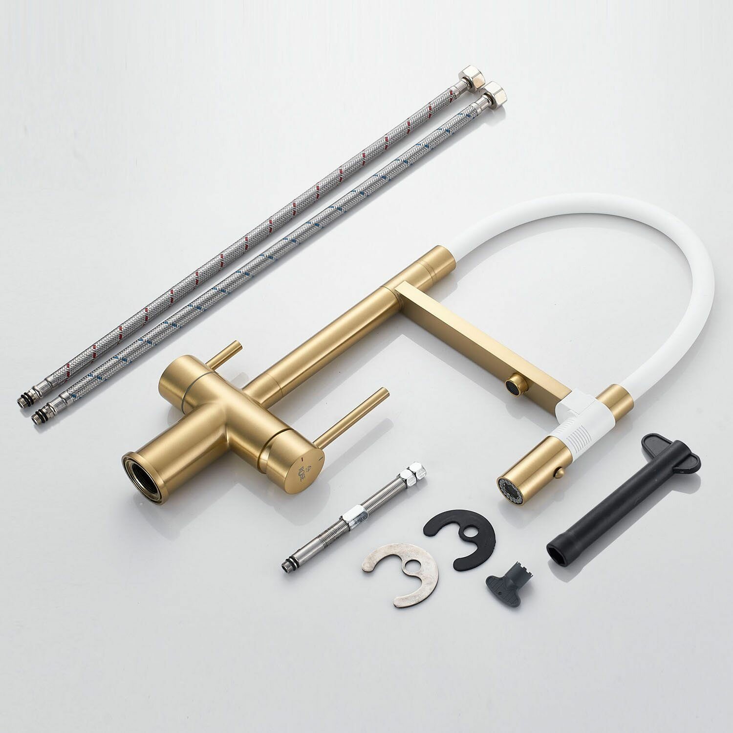 ROSE Смеситель для кухни с гибким изливом и подключением фильтра, золото R958G: сравнение цен, характеристики, фото, актуальное наличие и цены.