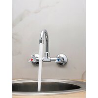 Смеситель для кухни РМС SL119-362 - это настенный двуручковый смеситель, который станет незаменимым помощником на вашей кухне. Он обладает не отполированным хромированным корпусом и полированным высоким изливом, что делает его удобным и практичным в использовании.