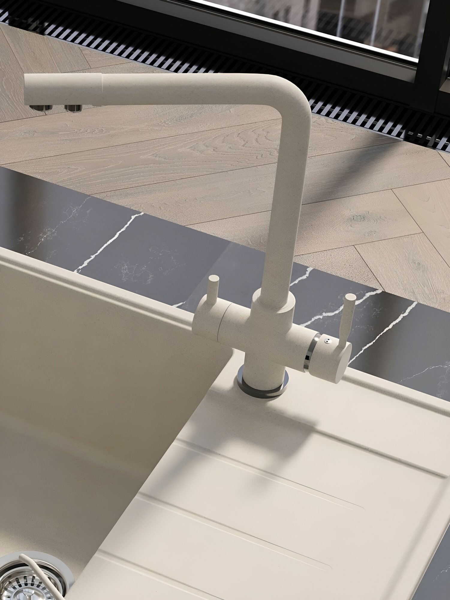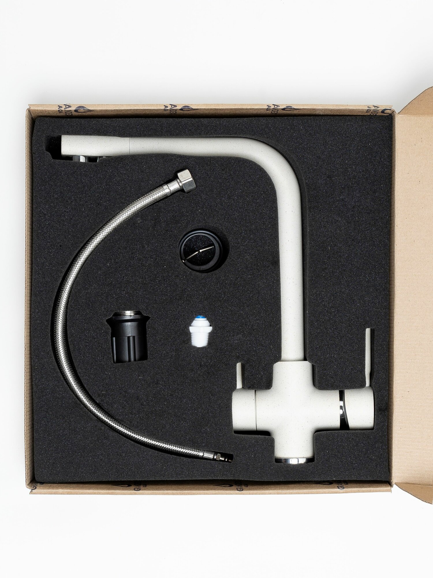 Смеситель для кухни с фильтром для питьевой воды белый из нержавеющей стали на каменную мойку Grandex Aqua PURE-L: сравнение цен, характеристики, фото, актуальное наличие и цены.