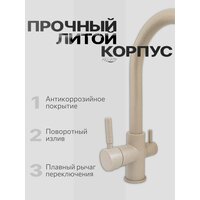 Купить Смеситель для кухни с фильтром для питьевой воды бежевый, кран для мойки с высоким поворотным изливом, латунь с доставкой по всей России. Смеситель для кухни с фильтром для питьевой воды бежевый, кран для мойки с высоким поворотным изливом, латунь: сравнение цен, характеристики, фото, актуальное наличие и цены.