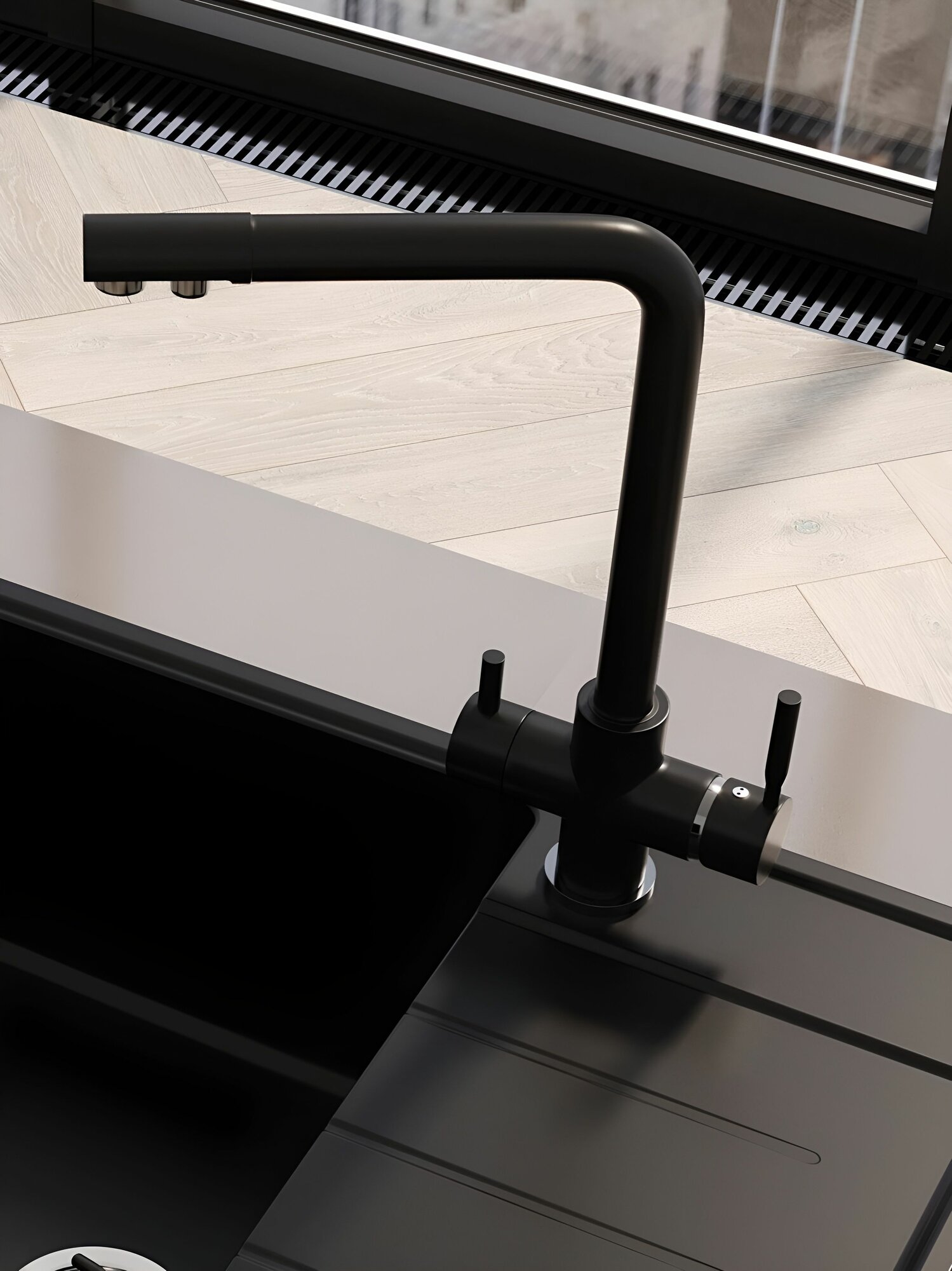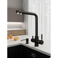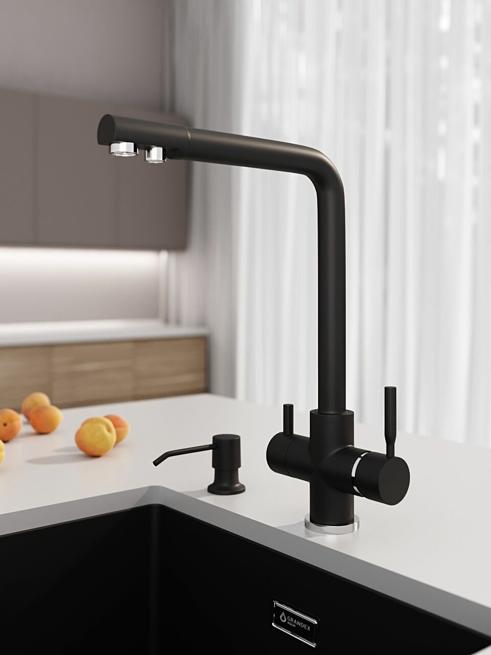 Смеситель для кухни с фильтром для питьевой воды черный карбон из нержавеющей стали на каменную мойку Grandex Aqua PURE-L: сравнение цен, характеристики, фото, актуальное наличие и цены.