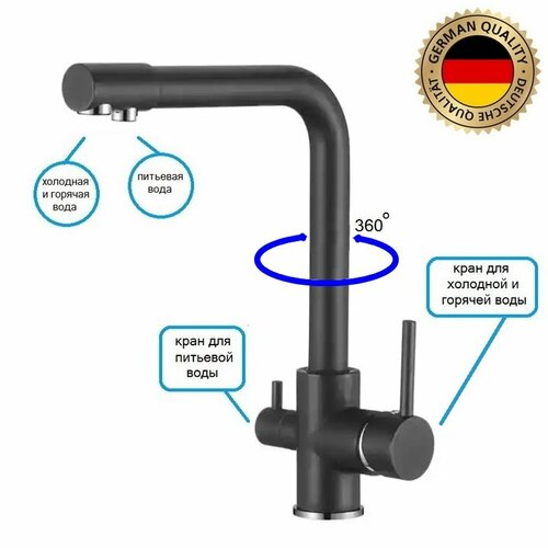 Смеситель для кухни с фильтром для питьевой воды GMP, черный матовый: сравнение цен, характеристики, фото, актуальное наличие и цены.