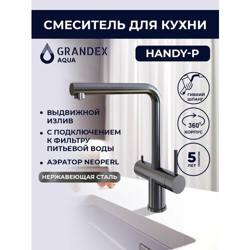 Смеситель для кухни с фильтром для питьевой воды и выдвижным изливом Grandex Aqua Handy-P, цвет антрацит (темный металлик): сравнение цен, характеристики, фото, актуальное наличие и цены.