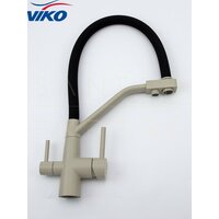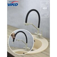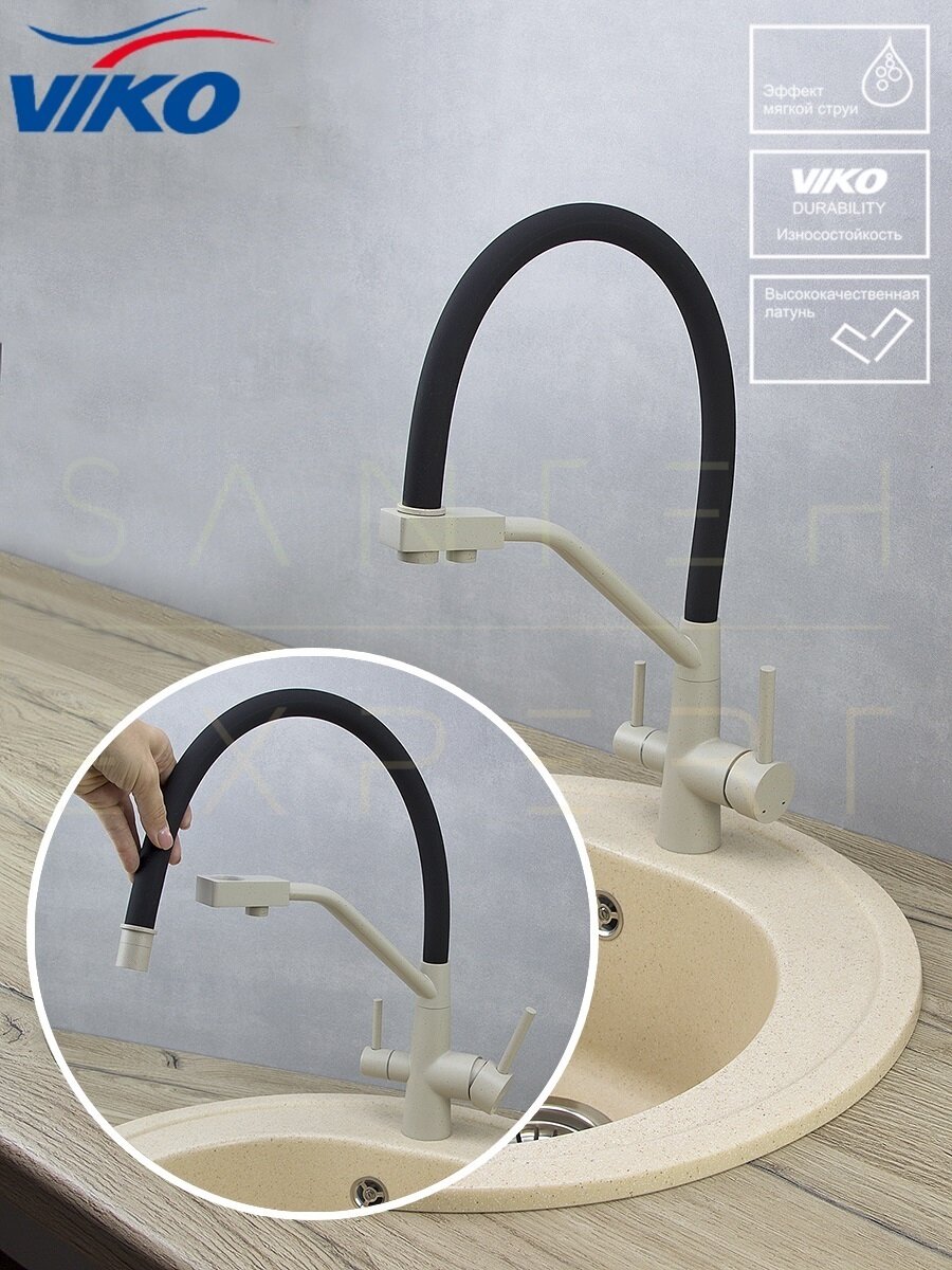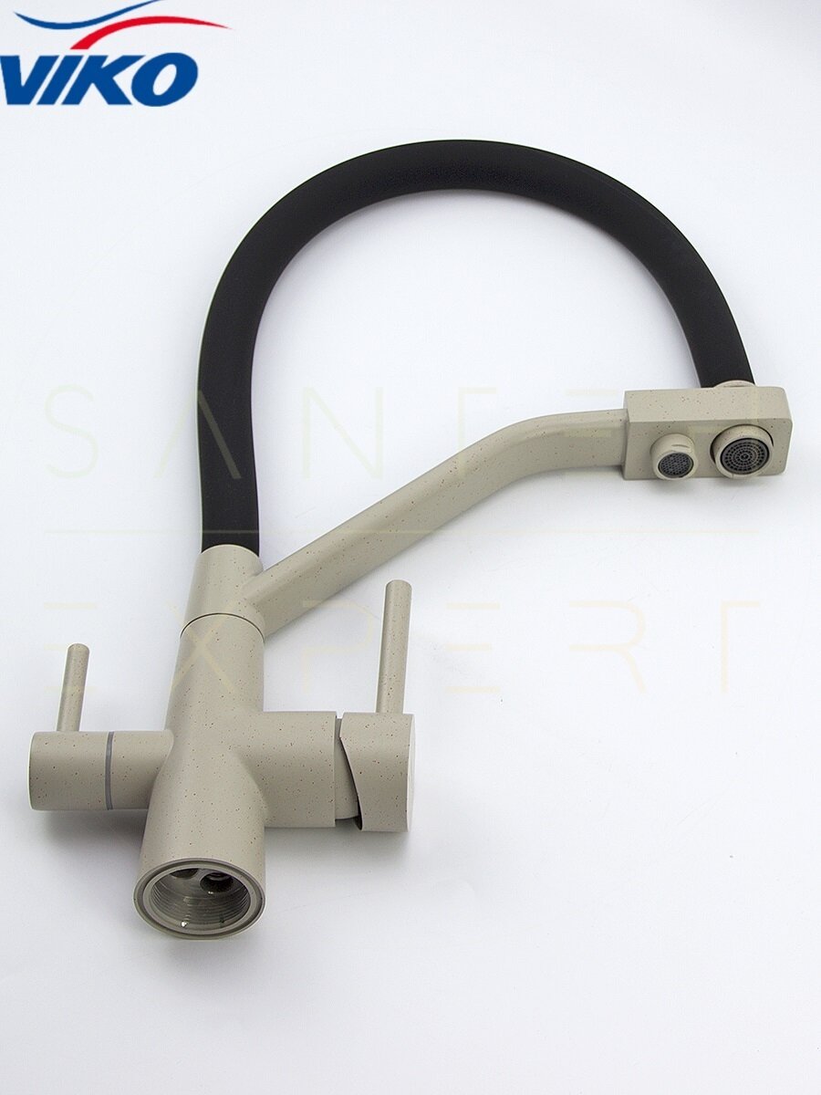 Купить Смеситель для кухни VIKO V-5812 с гибким изливом и подключением к фильтру 2 в 1 (нержавеющая сталь) картридж d35 мм, (корпус/излив: бежевый мрамор/черный) с доставкой по всей России.
