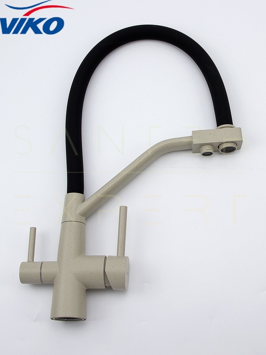 Смеситель для кухни VIKO V-5812 с гибким изливом и подключением к фильтру 2 в 1 (нержавеющая сталь) картридж d35 мм, (корпус/излив: бежевый мрамор/черный): сравнение цен, характеристики, фото, актуальное наличие и цены.