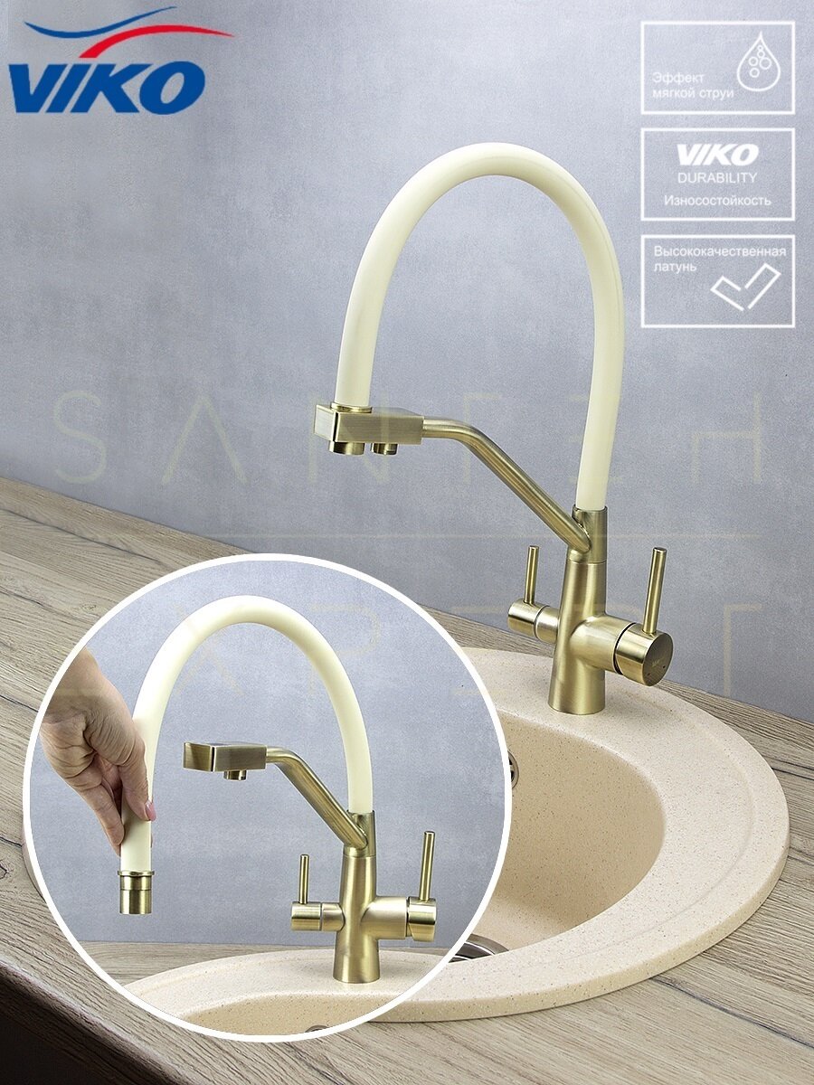 Купить Смеситель для кухни Viko V-5832 Бронза Белый латунь Китай с доставкой по всей России.