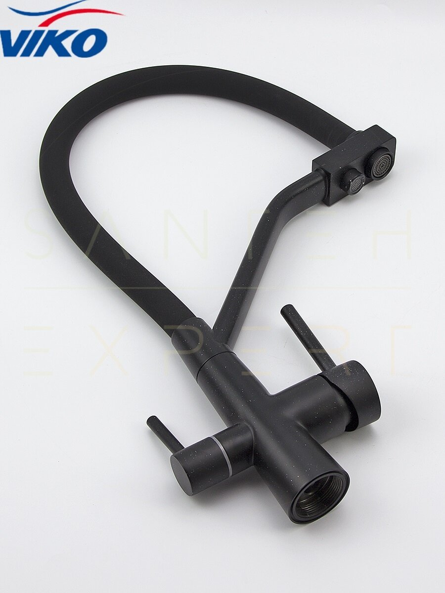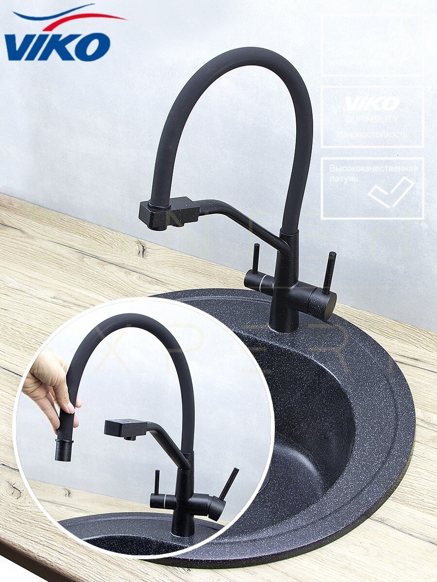 Смеситель для кухни с фильтром для питьевой воды и выдвижным изливом VIKO V-5872, цвет черный мрамор/черный матовый: сравнение цен, характеристики, фото, актуальное наличие и цены.