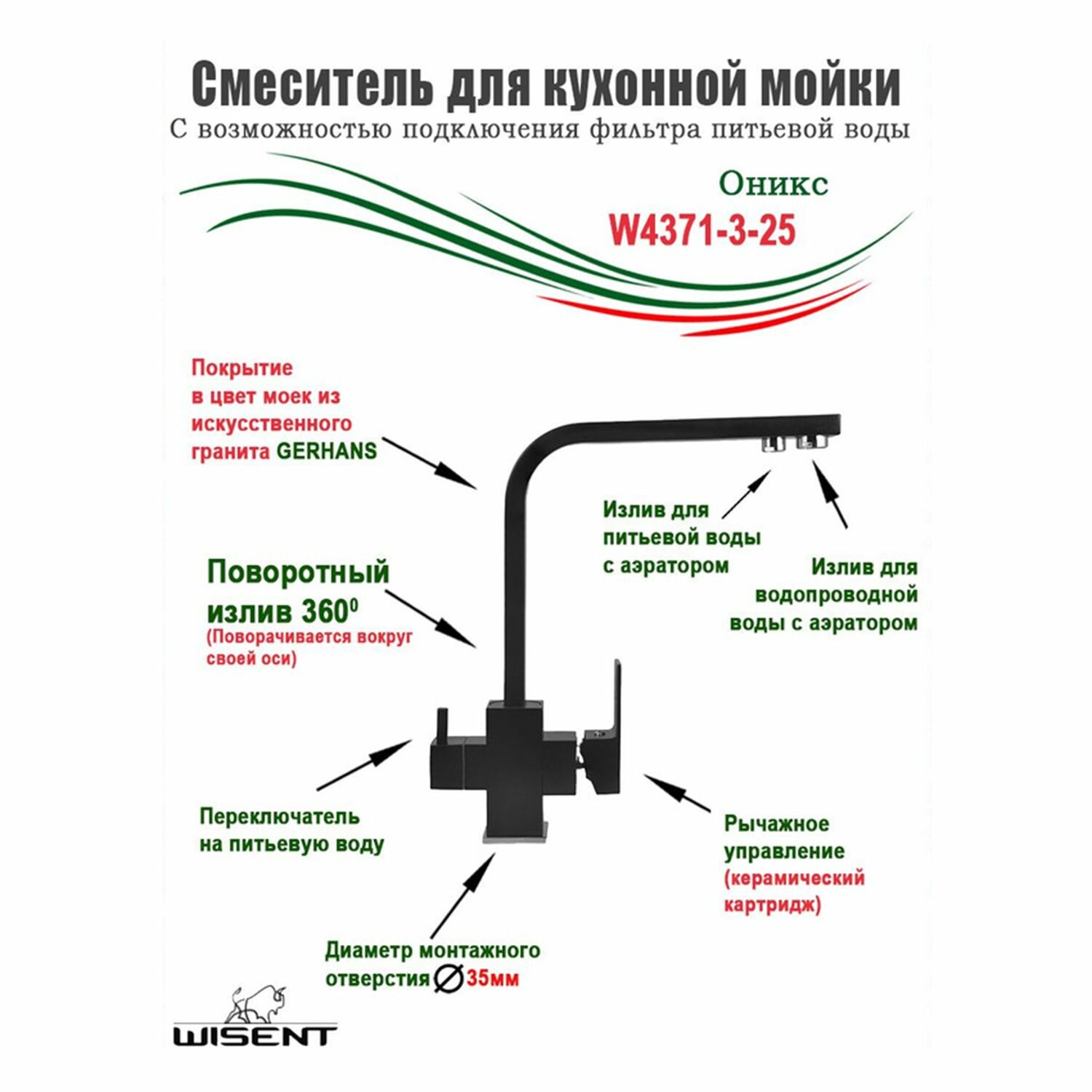 Смеситель для кухни с фильтром для питьевой воды (оникс, черный) WISENT W4371-3-25: сравнение цен, характеристики, фото, актуальное наличие и цены.