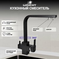 Купить Смеситель для кухни с фильтром для питьевой воды (оникс, черный) WISENT W4371-3-25 с доставкой по всей России.