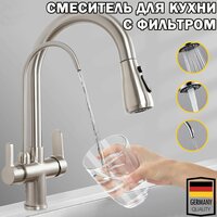 Смеситель для кухни с фильтром для питьевой воды, с гибким изливом, ванны с душем, раковины в ванную, кран для кухни, щетка никелированная: сравнение цен, характеристики, фото, актуальное наличие и цены.