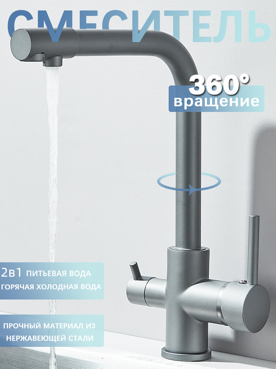 Смеситель для кухни с фильтром для питьевой воды , серый матовый: сравнение цен, характеристики, фото, актуальное наличие и цены.