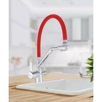 | Комплектация | смеситель для кухни, резиновое уплотнительное кольцо, монтажная трубка полая, резиновая прокладка, металлическая затяжная гайка, гибкая подводка 55 см под холодную и горячую воду - 2 шт, гибкая подводка 30 см под фильтрованную воду, переходник пластиковый под фильтр, гарантийный талон и инструкция по эксплуатации |