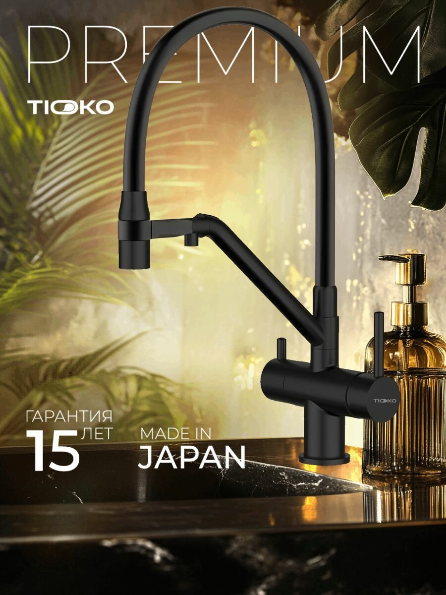 Смеситель для кухни с гибким изливом, аэратором и фильтром для питьевой воды, кран для кухни черный, TIOKO