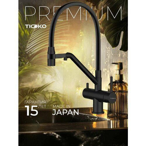 Смеситель для кухни с гибким изливом, аэратором и фильтром для питьевой воды, кран для кухни черный, TIOKO