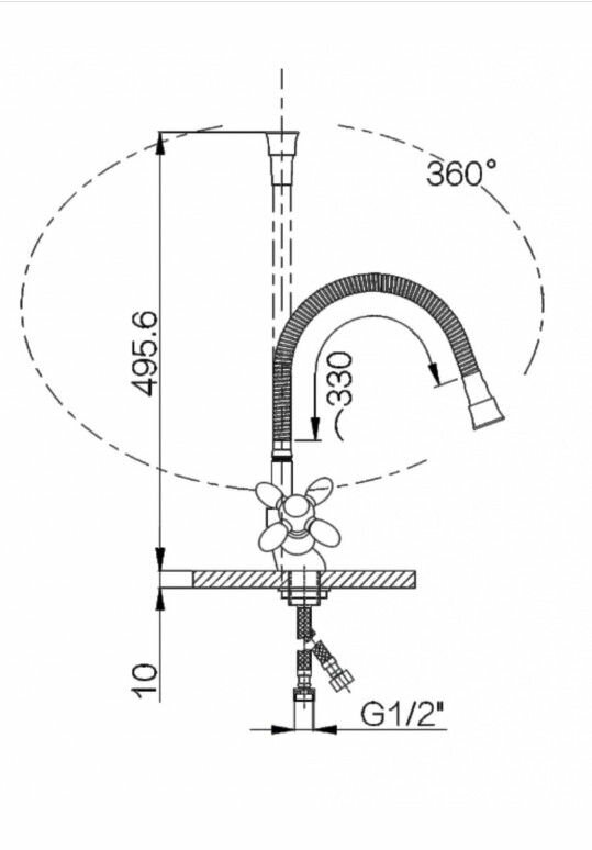 Смеситель подходит для разных интерьеров и типов моек. Монтаж горизонтальный, присоединительный размер составляет 1".