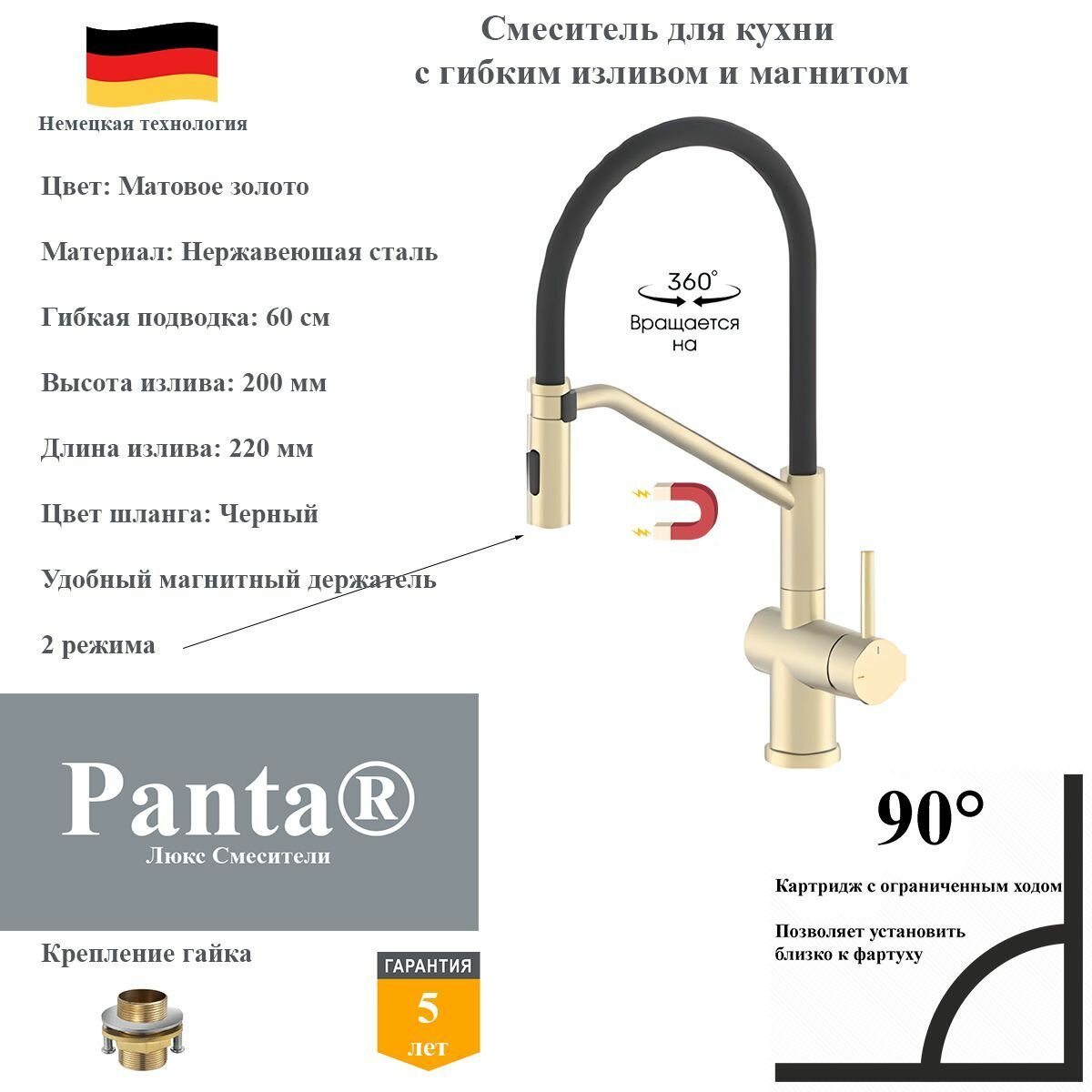 | Тип излива | гибкий, поворотный |