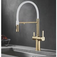 Смеситель для кухни с гибким изливом и подключением фильтра Rose R358G золотой сатин