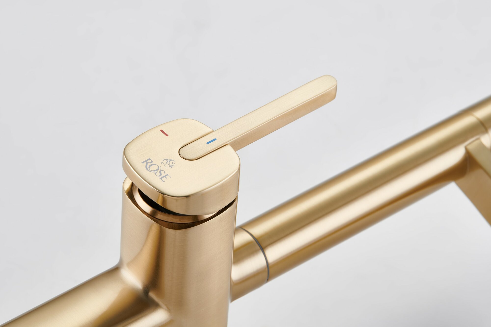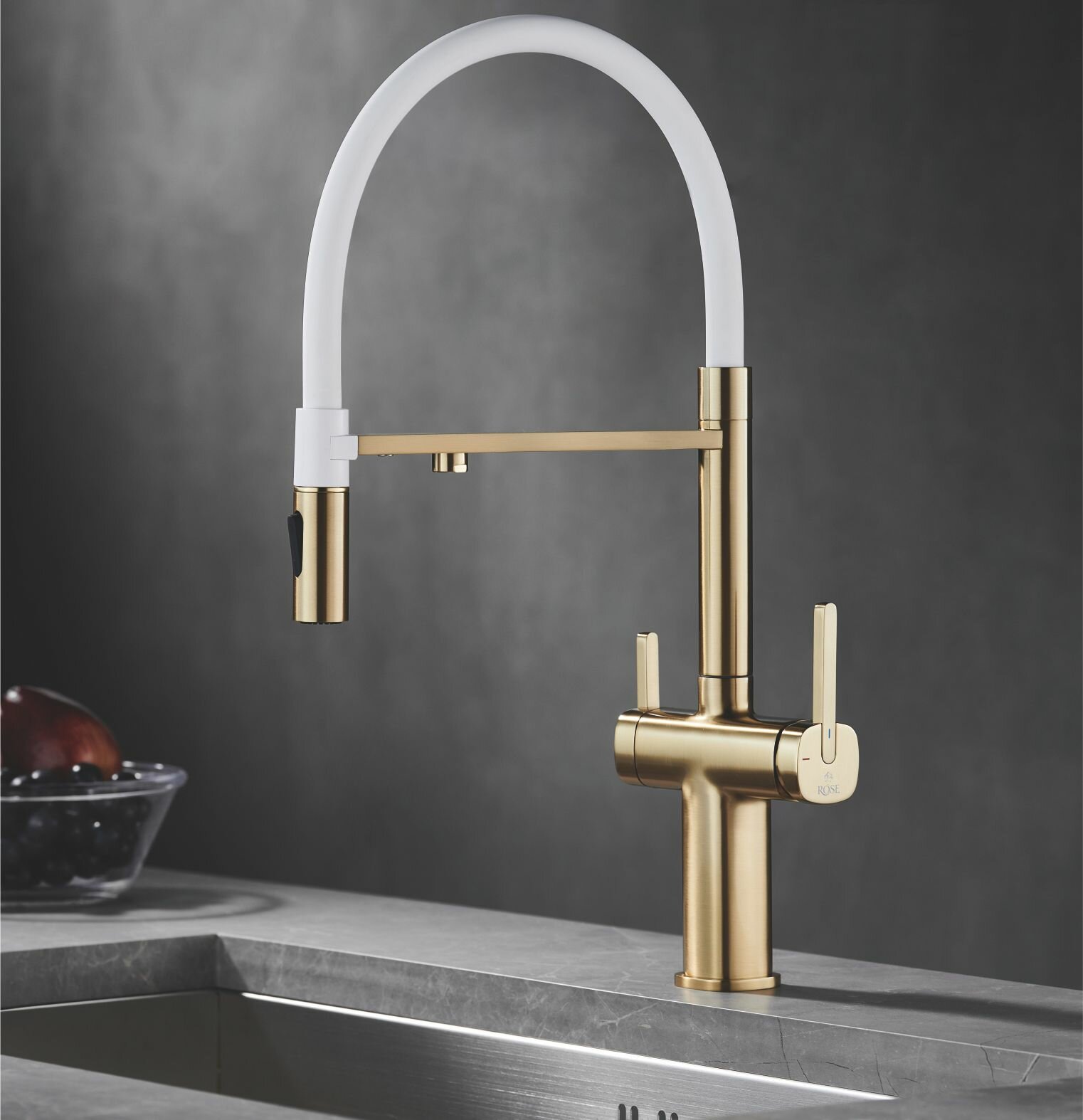 Смеситель для кухни с гибким изливом и подключением фильтра Rose R358G золотой сатин: сравнение цен, характеристики, фото, актуальное наличие и цены.