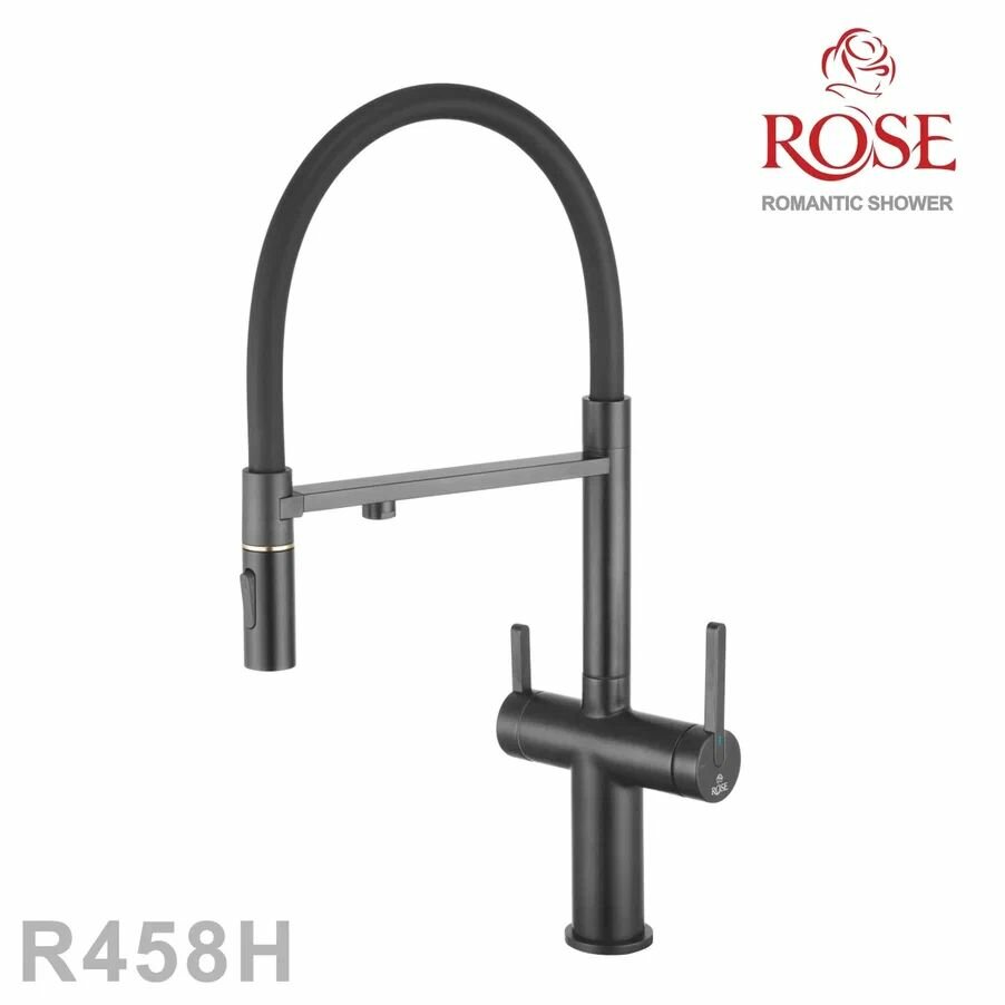Смеситель для кухни с гибким изливом и подключением фильтра Rose R458H черный: сравнение цен, характеристики, фото, актуальное наличие и цены.
