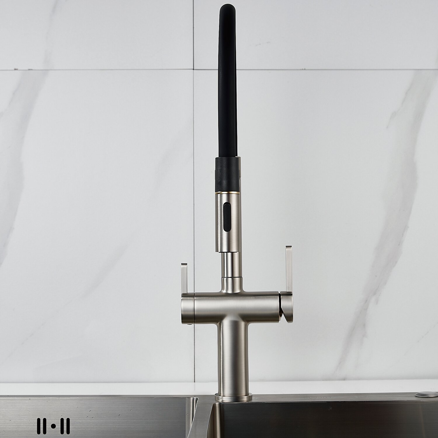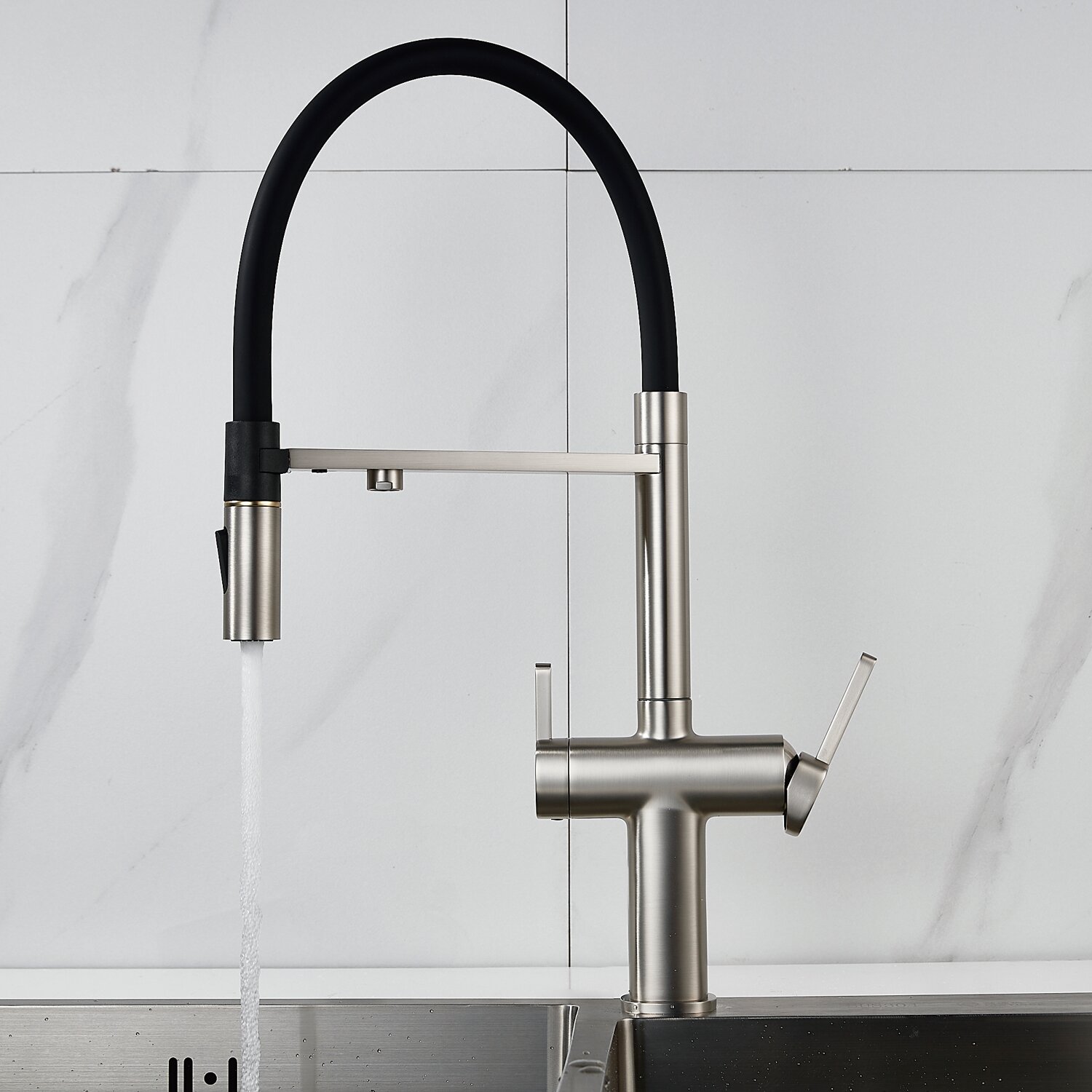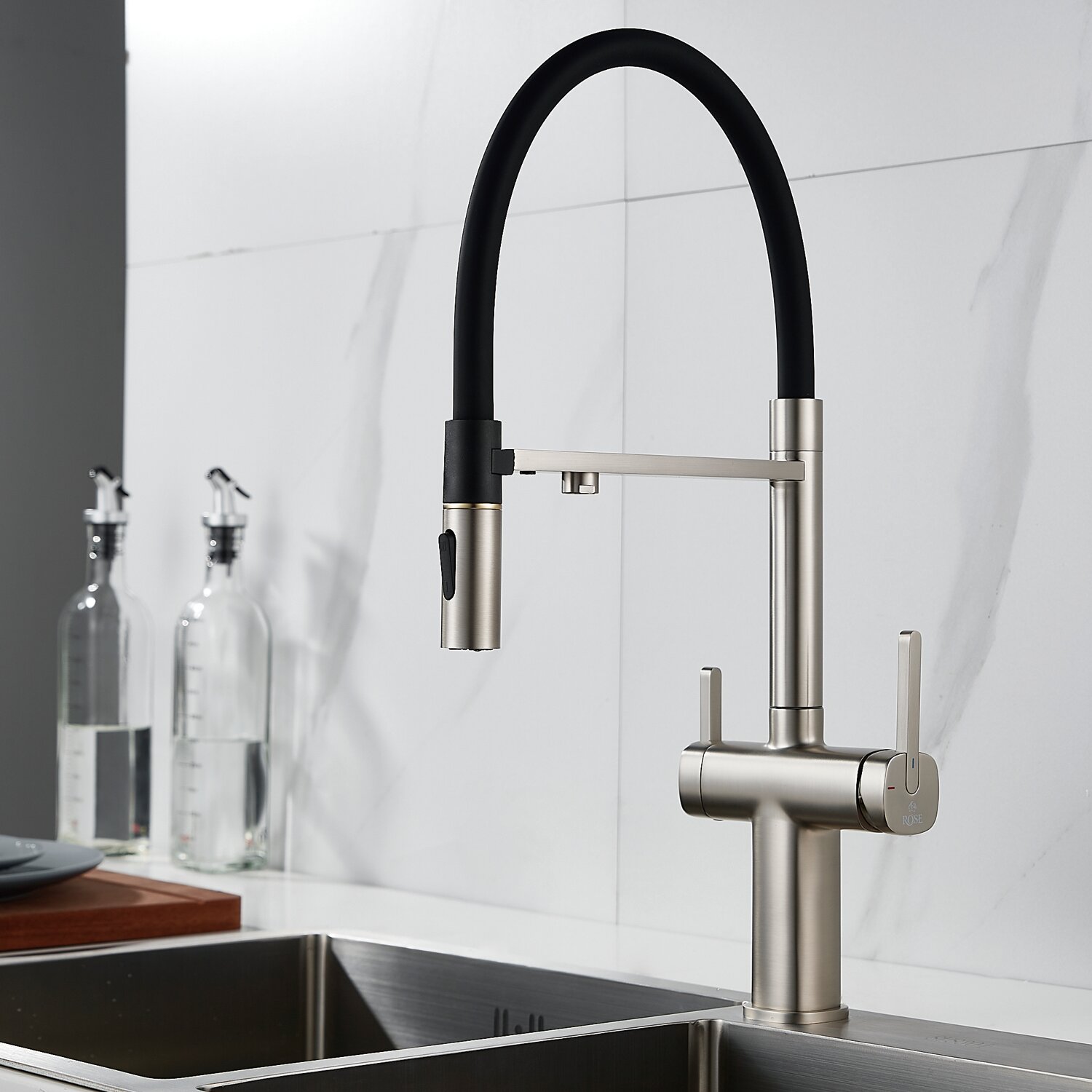 Смеситель для кухни с гибким изливом и подключением фильтра Rose R358L сатин