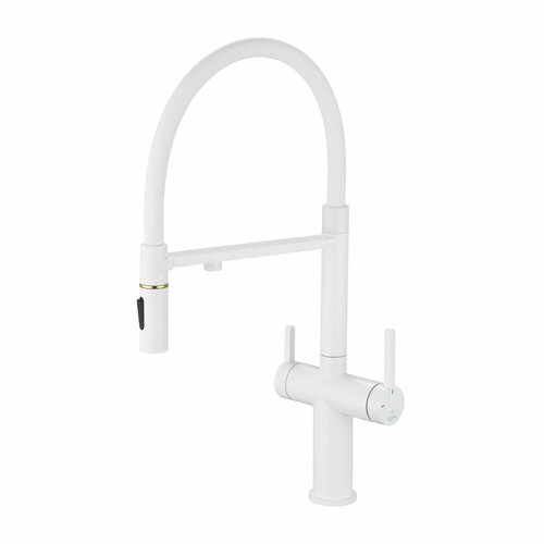 Смеситель для кухни с гибким изливом и подключением фильтра Rose R458C, белый