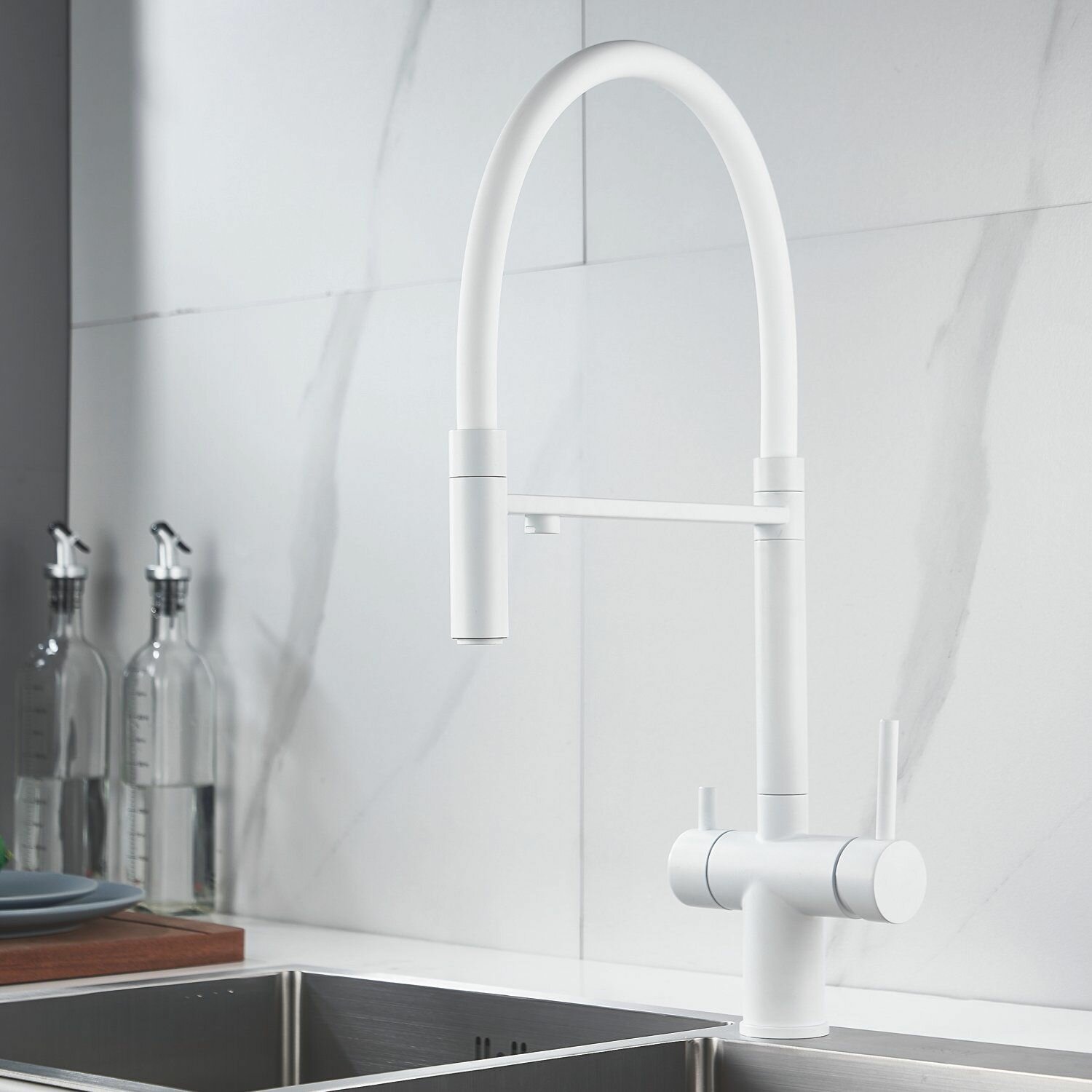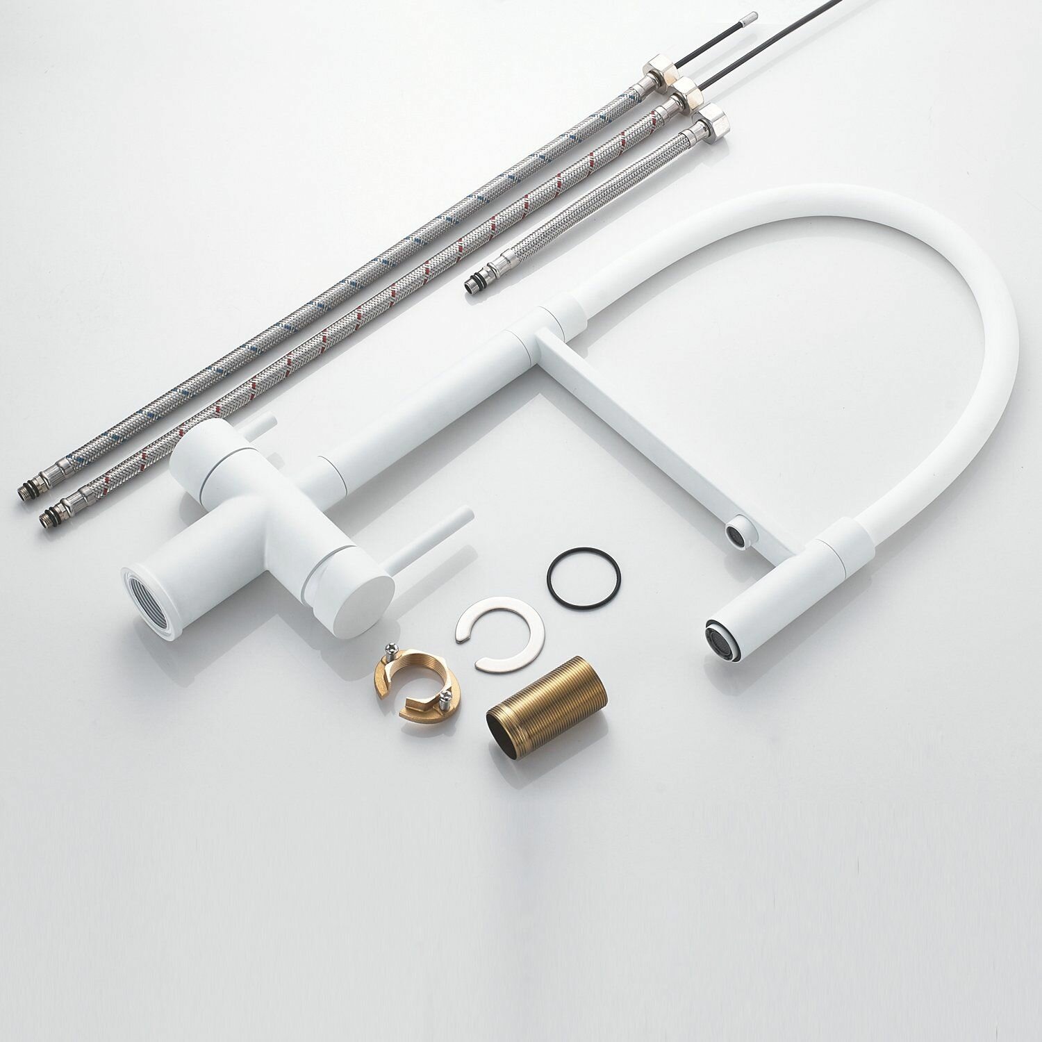 Смеситель для кухни с гибким изливом с подключением к фильтру S178C белый