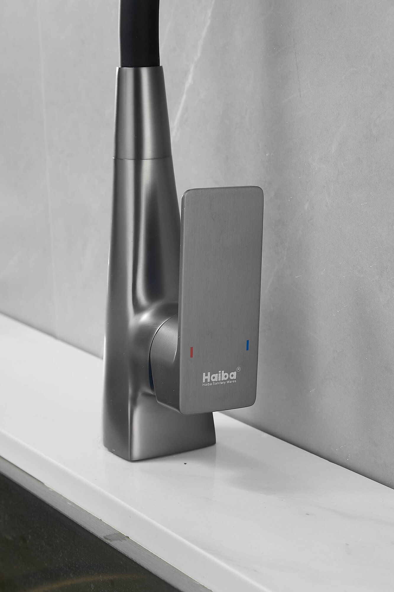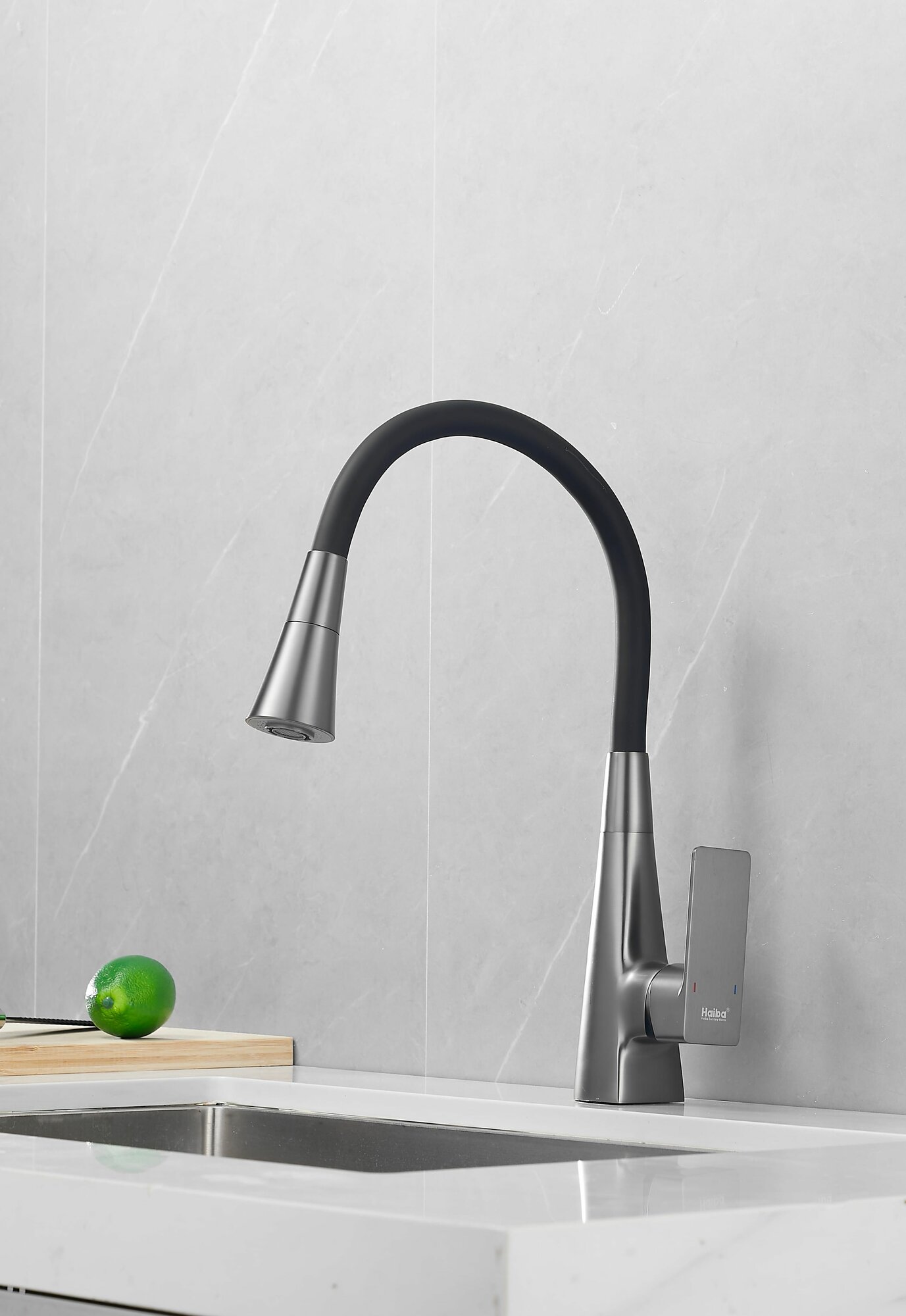 Смеситель для кухни с гибким силиконовым изливом, кран из латуни на мойку серый Haiba HB73823-3: сравнение цен, характеристики, фото, актуальное наличие и цены.