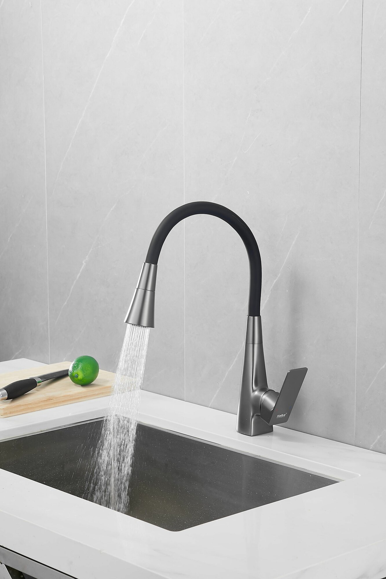 Купить Смеситель для кухни с гибким силиконовым изливом, кран из латуни на мойку серый Haiba HB73823-3 с доставкой по всей России.