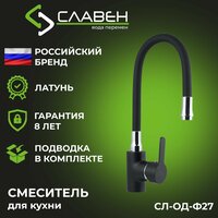 Купить Смеситель для кухни с гибким изливом из силикона, одноручный, черный, Славен СЛ-ЦВ-Ф27 с доставкой по всей России.