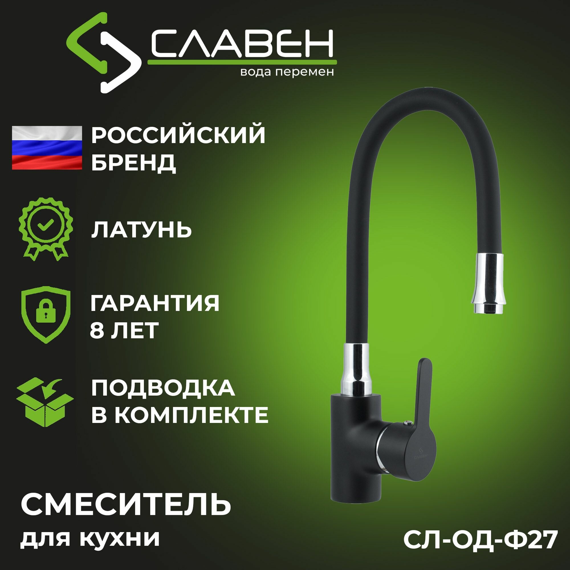 Смеситель для кухни с гибким изливом из силикона, одноручный, черный, Славен СЛ-ЦВ-Ф27: сравнение цен, характеристики, фото, актуальное наличие и цены.